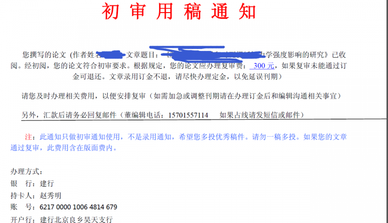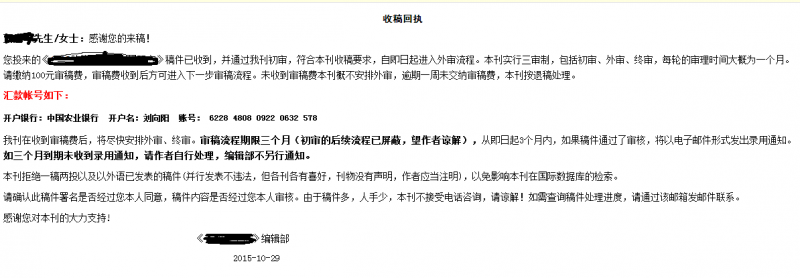 大家不要在上当,有人借收审稿费实施诈骗!!!已有43人参与