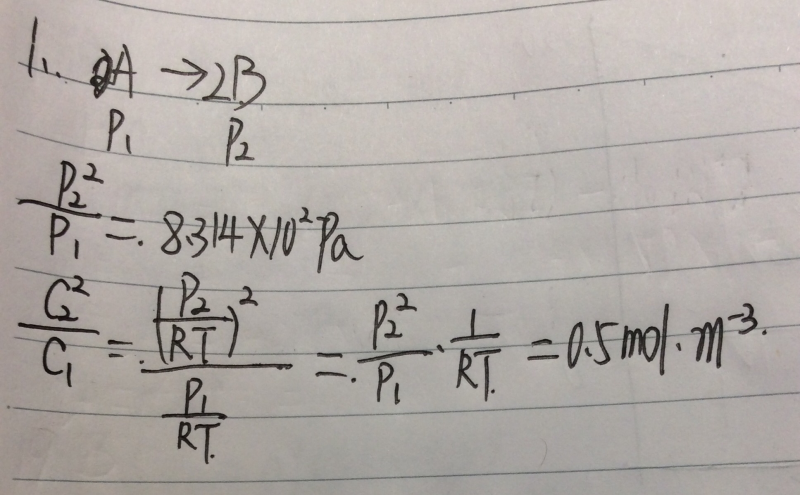Pa与m3相对,这是对的,可能是答案打错了,浓度的单位何时用过mol/cm3...