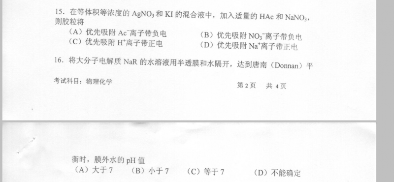 16、选A。Na+通过半透膜进入纯水中,根据电中性原则水中的H+会进入大分子溶液一侧,故膜外水的pH>7。