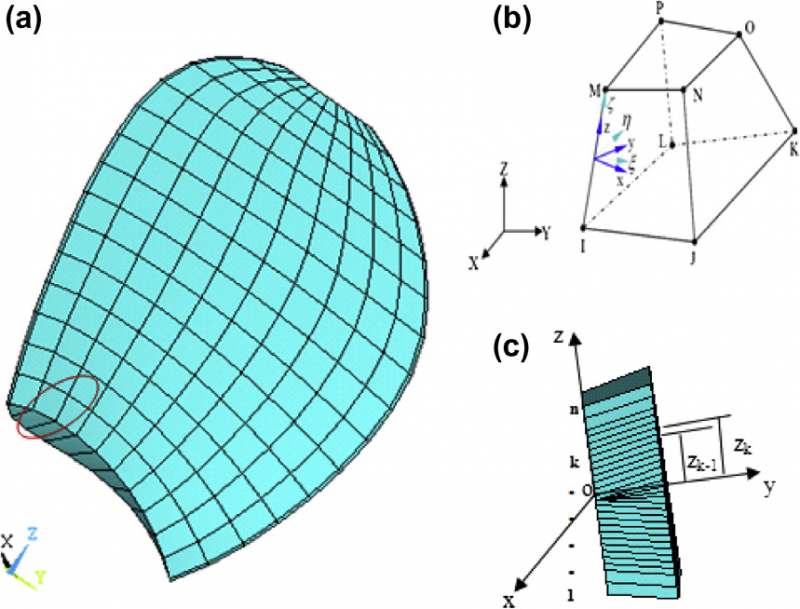 做复合材料铺层,发现如下问题: 对于一个单元,总有个total thickness, 下面是文献中的图片: 图(b)中的单元总厚度如何确定 1,有限元计算中,对于扭曲的六面体,如何确定其总厚度? 2, 对于退化的solid 185 单元 ,比如 三棱柱,如何确定其总厚度? |
