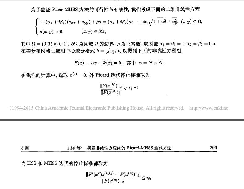 1、图1中的方程怎么利用五点中心差分格式离散化呢? 2、离散化成F(x)=Ax-φ(x)后,系数矩阵A和φ(x)又是什么呢? 3、图1中内迭代时F'(x_k)和s^(k,l_k)又是什么呢? 对该方程的离散化一点不懂,请教大家不胜感激 2.png 3.jpg |