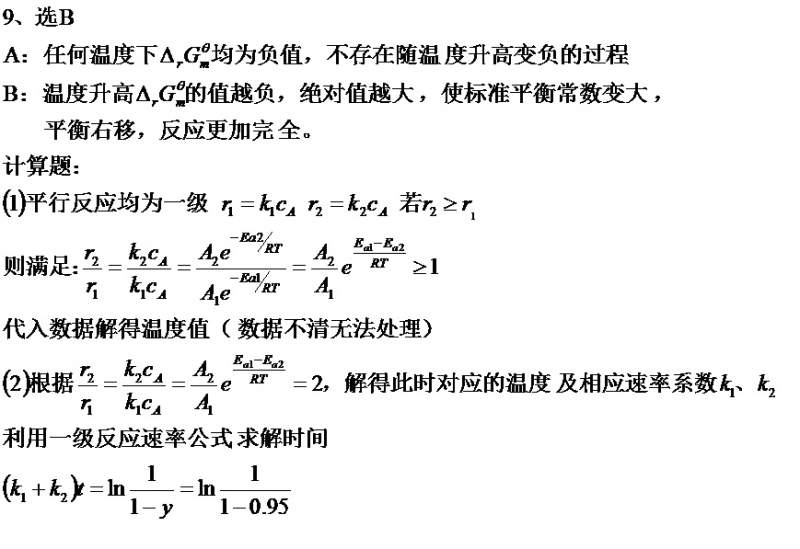 求助选择9题和那个平行反应的计算题的解答与解析,谢谢 发自小木虫Android客户端 |