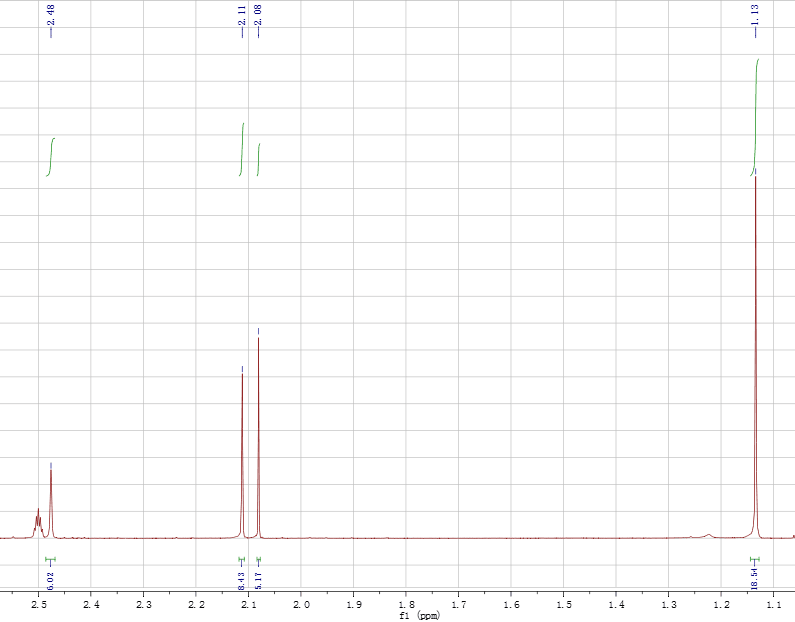 1H-NMR (DMSO-d6,500 MHz) δ:1.13(S,18.54H), 2.08(S, 5.17H ),2.11(S, 8.43H ),2.48(S, 6.02H ),这里面是不是有溶剂峰啊? 是.png |