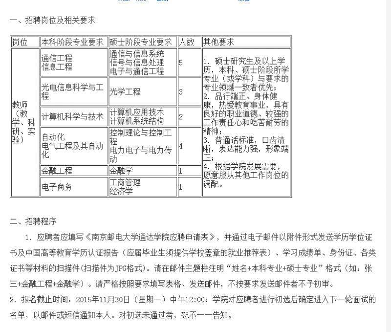 南京邮电大学通达学院招聘教师、实验员18名,具体专业要求见附件,或者登陆学院网站https://42.121.144.20/,点击“人才招聘”,按照要求发送简历。