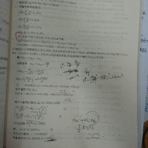 老师,你看我这样做的对不对。我不太理解你列的平衡时H2O和CO2的分压关系。
