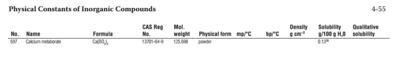 | 偏硼酸钙在水中的溶解度是多少?知道的请告知下 |