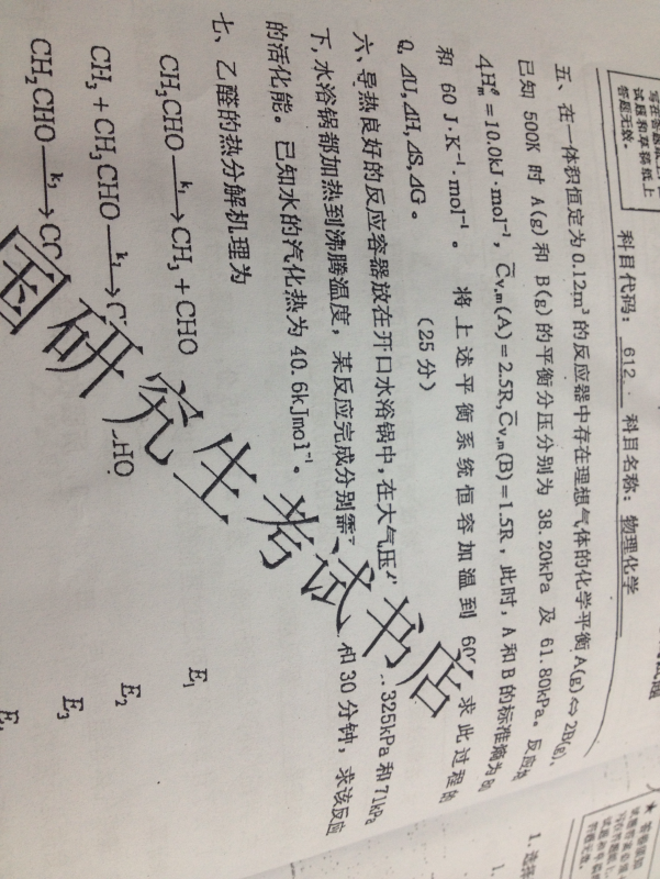 几道物化题目,求解答,望有详细分析过程已有1人参与