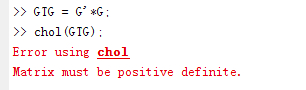 你确定GG’必须为正定矩阵吗?有什么根据?或者发链接给我。 下面是我用matlab求Chollesky分解来判断矩阵是否正定,下面是链接 http://blog.sina.com.cn/s/blog_6292266201019yne.html 捕获.PNG |