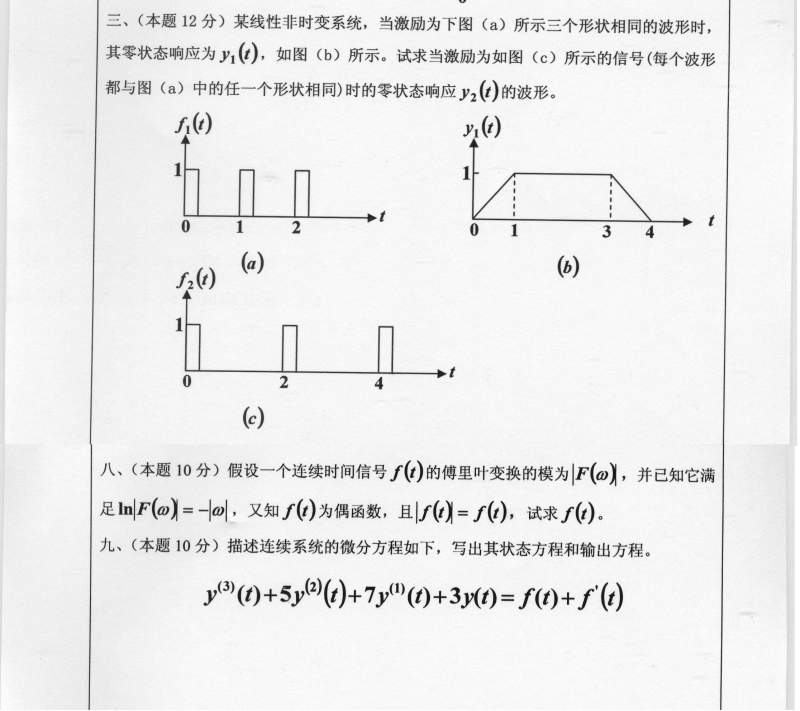 信号与系统试题不会做,跪求答案