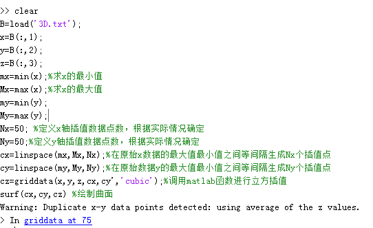 我现在有三组数据,分别是x,y,z坐标,三维散点图很好画,选中三组数据直接就能画出来,可是三维曲面图怎么画啊??? 我的x,y数据都不是均匀间隔,所以在生成矩阵的时候用了XYZ Gridding-Random(Thin Plate Spline),columns和rows都设定为100,smoothing设定为0.05。 我的z坐标范围都在15~170之间,150以下的点比较少,150以上的点比较密集。可是我用上述方法得到的矩阵中,z的值都比较大,几乎没有50以下的点,导致画出来的图和预期不符,所以想来请教一下大家,是我的columns,rows,smoothing这些参数设置有问题,还是一开始方法选的就不对? 数据见附件(其中有两张工作表,最终是想把两张工作表得到的两个曲面放在一个坐标系中,大家分析的时候只看工作表1即可),感激不尽 |