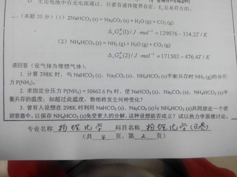 考研学子,物化问题求解谢谢