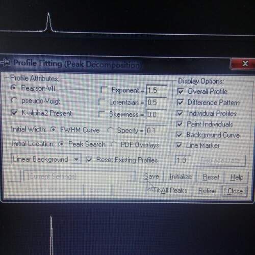 这是我试样的XRD图,如果单峰拟合,是每一个都选择?我拟合步骤:打开文件--S/M--选择某一个峰--峰形拟合--Refine,第二张图中参数怎么选择?