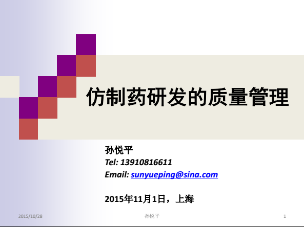 仿制药研发的质量管理—孙悦平(上海)2015.11.1