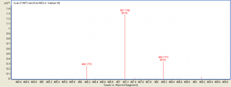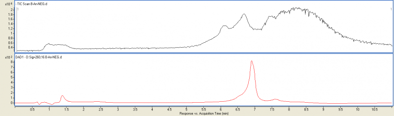 前几天打了个质谱,紫外显示在6.8min中出了一个大峰,结果给出的结果在7.09min处有我想要的峰,和打质谱的人讨论了一下,他说先走紫外再进离子源,所以质谱出峰会比紫外出峰延迟0.2min,所以质谱上7min处和紫外上6.8min相对应,是这样吗? 01.png 03.png |