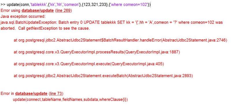 使用的数据库是postgresql,更新数据库用的是数据库管理软件Navicat Premium。现想用MATLAB实现在数据库中的插入数据与更新等简单的功能。使用数据更新函数update时,使用如下语句update(conn,'pvforcast',{'real'},[1],'WHRER =102')(如图),这个语句是根据MATLAB中help的格式以及网上的格式来的,但是MATLAB报错(如图),问题思考良久也尝试了许多方案,都以失败告终,还请各路大神帮忙解决这个困难的问题,已经弄了很久了。谢谢。