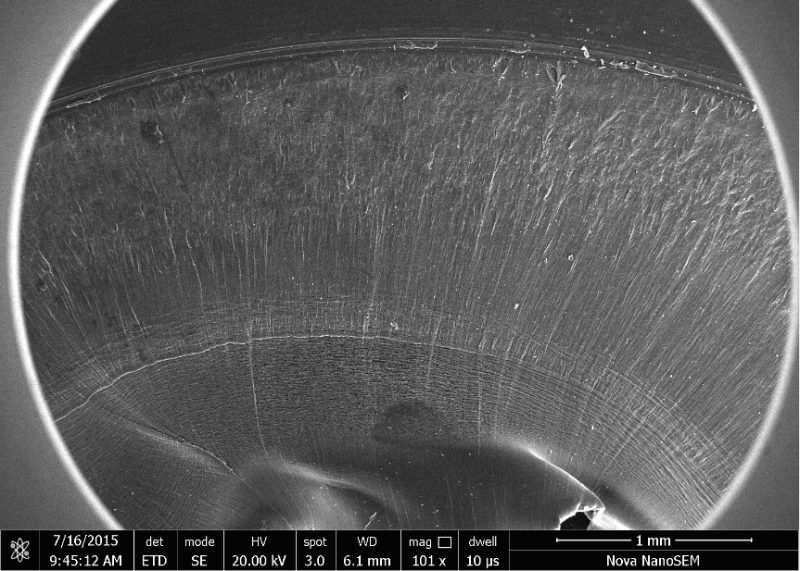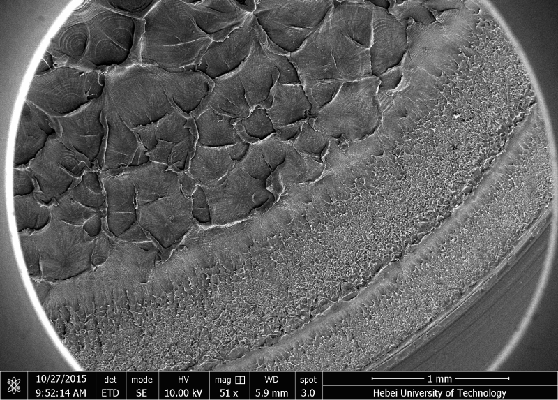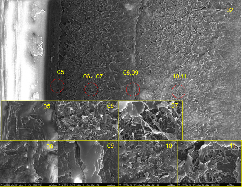 求助HDPE100 无焊缝试件与热熔焊试件加载疲劳载荷后断面各区域专业名称及分析