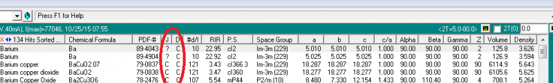 JADE物相检索处最上一栏的的J和D是什么意思?如图,是物相对应的PDF卡片的可信度吗?