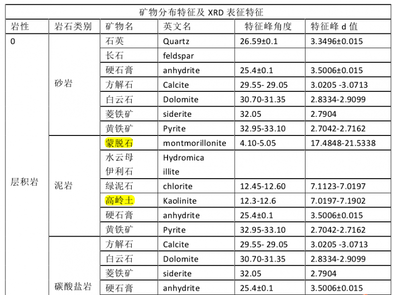 求资源-X射线衍射峰角度和特征峰所对应的粘土矿物?
