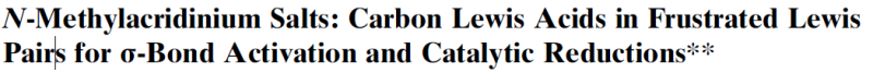 请给为大神帮我翻译一下这个文献的题目 N-Methylacridinium Salts: Carbon Lewis Acids in Frustrated Lewis Pairs for σ-Bond Activation and Catalytic Reductions QQ截图20151111194505.png |