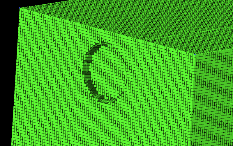 ICEM 大神好!小弟在使用ICEM CFD 画网格的时候遇到困难,有壁厚的长方体左右两侧开孔作为入口和出口条件,对应的空面part 分别是 IN OUT,由于block是3D的,现在法在两个孔面(平面)形成一个2D 的block.跪求大神帮忙,感激不尽!!!目的是绿色的壁面(厚度2mm)是体网格,红色的入口面s 面网格)。谢谢!