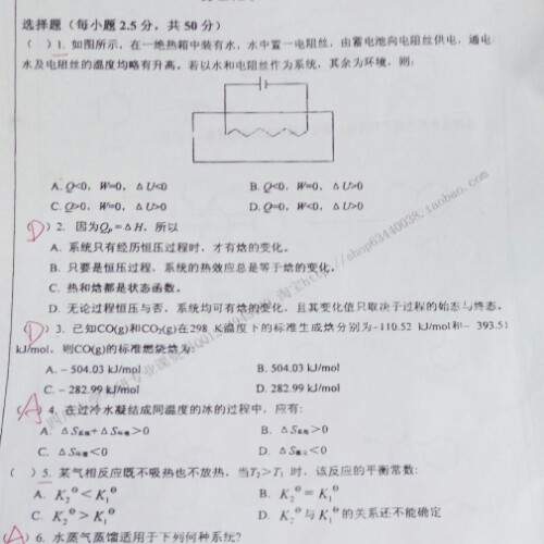 1、选D。该题使用的公式为ΔU=Q-W ,W的符号规定不同。