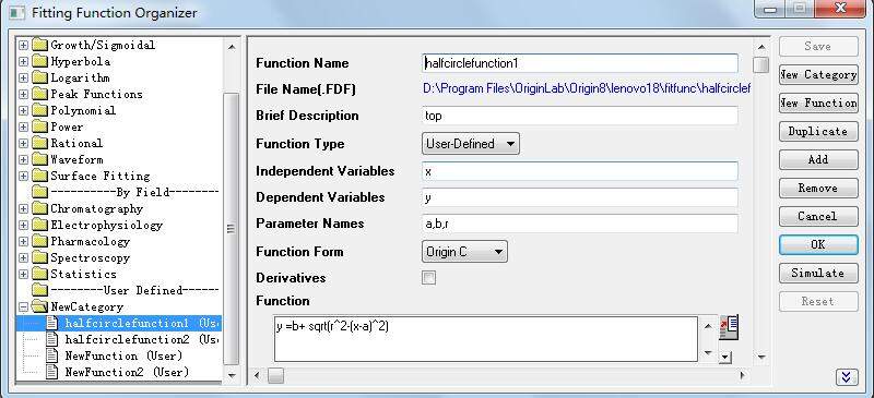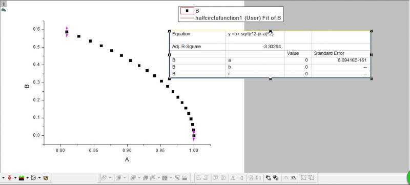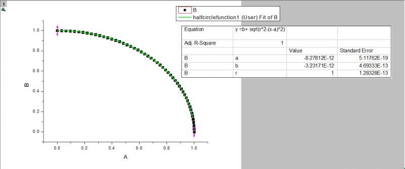 为什么origin自定义函数拟合半圆曲线会有一部分拟合不上呢?
