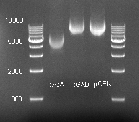 提出来的质粒电泳是这个样子的,测OD值,260/280在2.1左右,260/230在0.65左右。这样的质粒能用于后续的载体构建吗?目测条带位于相应的区域,pAbAi(4.9k),pGAD(8k), pGBE(7.3k),这些都是跟别人要的载体,不知道是否改造过。请高手指点! 质粒.gif |