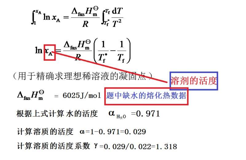 这道题该怎么算呢?活度怎么和凝固点降低挂钩呢?求助啊!急~就最下面这两问 发自小木虫Android客户端 |