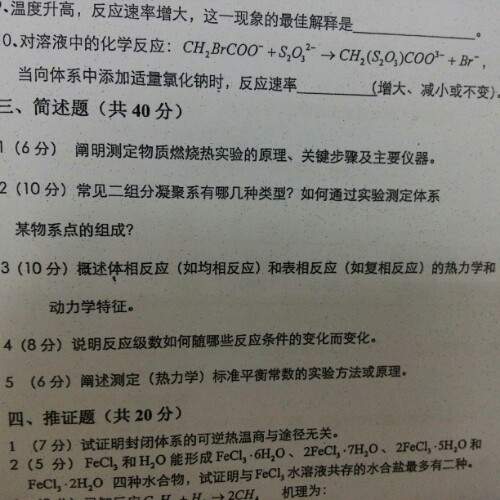 第三题都在物理化学实验里有的。具体答案可以参考相关实验