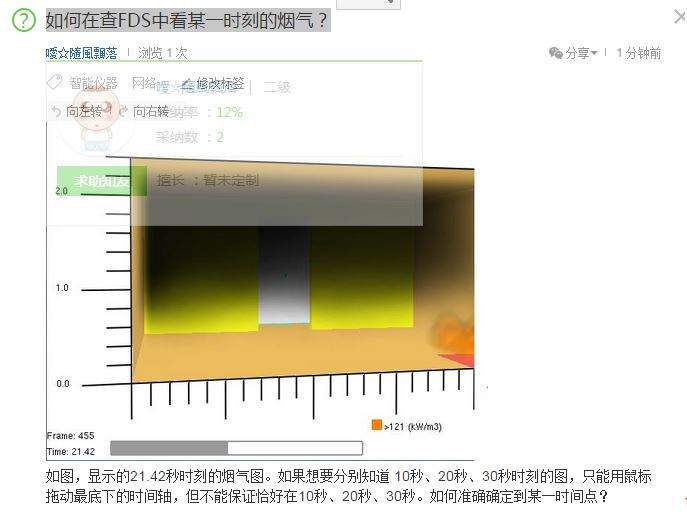 如图,显示的21.42秒时刻的烟气图。如果想要分别知道 10秒、20秒、30秒时刻的图,只能用鼠标拖动最底下的时间轴,但不能保证恰好在10秒、20秒、30秒。如何准确确定到某一时间点?