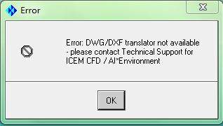 安装的ANSYS 15.0,用 ICEM CFD导入DWG格式的导入不了,提示错误(见下图),在CAD Configuration Manager中设置了Auto CAD也不行,肿么办?