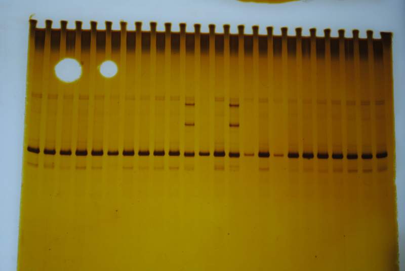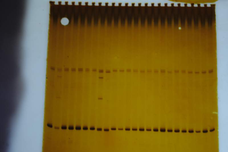 这是今天跑的两张胶图,一共是跑了8板,其中前4个是用一台机器,后4个是用一台机器。 选取了1号和6号图作比较,前4号的胶图跑的没问题,而后4个的胶就像6号胶一样,感觉跑到一半就停了不动了。 前几天跑的都没事,不知道是不是电泳仪或者那两个电泳槽出问题了,缓冲液加的也够。所以请大家帮我分析一下,这怎么办,电泳仪或者电泳槽出问题了是不是得换了就? 谢谢各位。 6.jpg 1.jpg |