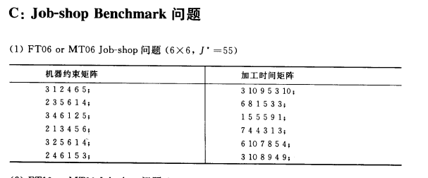 车间调度FT06问题的数据,机器约束矩阵和时间矩阵的含义是?