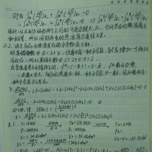 这个证明题里面用到的是条件自由度,如果不固定温度或压力那自由度就是4--相数,除了氯化铁水溶液一相,不就还可以有3相吗?那应该有3种水合盐,求解答~~~ 发自小木虫Android客户端 |