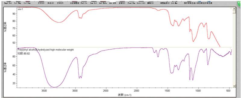 叔醇峰降低很多,说明大部分的OH发生了反应,还有就是3000-3500之间羟基的吸收峰也变弱,而且也是很明显。2900的峰变弱,800的峰变弱。1300-1500的峰降低,①1100-1200的峰变弱很明显,这应该是醇羟基的弯曲振动峰,②1600-1700的峰酯羰基峰消失,说明这个基团去除掉了,③1100-1200的峰增强,所以我推断可能有脂肪醚,从这三个分析来看,可能采用的是醛类的交联剂,在酸性条件下交联脱水。得到的物质。 |