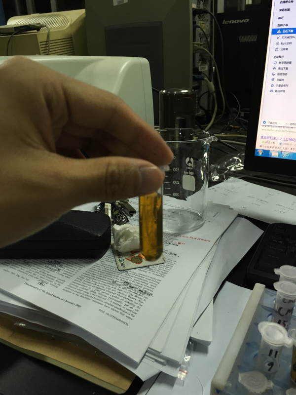 各位大神帮忙看看我合成的是纳米银材料吗?第一次制备纳米银,不太了解颜色的变化,纳米银溶液应该是什么颜色的啊?麻烦大家帮帮忙啊(0558图是制备是的状态,0559图是稀释后的样子) IMG_0558.JPG IMG_0559.JPG |