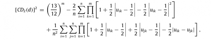 代码如下:下面例子以U= [1 2 3; 4 5 6; 7 8 9; 10 11 12]为例子计算得到的结果,其他值的时候只需要改版U即可 U = [1 2 3; 4 5 6; 7 8 9; 10 11 12]; [n,m] = size(U); y = (13/12)^m; for i=1:n for k=1:m tmp = abs(U(i,k)-1/2); y = y -2/n*(1+1/2*tmp- 1/2*tmp^2); end end for i=1:n for j=1:n for k=1:m tmp1 = U(i,k)-1/2; tmp2 = U(j,k)-1/2; tmp3 = tmp1 -tmp2; y = y + 1/n^2*(1+1/2*abs(tmp1)+1/2*abs(tmp2) -1/2*abs(tmp3)); end end end y 此例子结果 y = 136.3964 |
