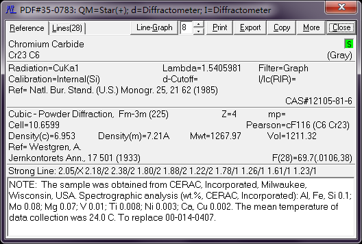 求助Cr23C6的RIR值!!