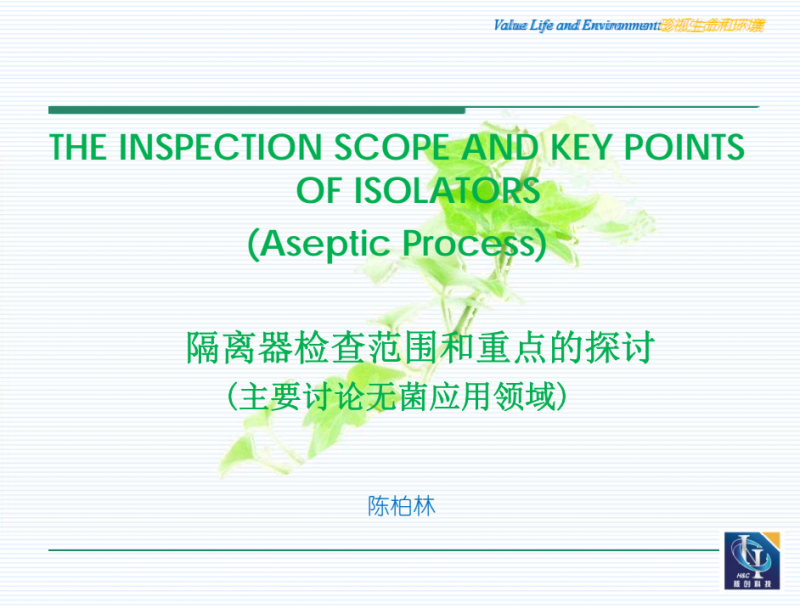隔离器检查范围和重点的探讨(主要讨论无菌应用领域)—陈柏林2015.11
