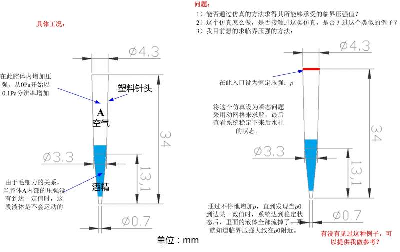 求 推动管中液滴移动的临界压强 的仿真 的问题