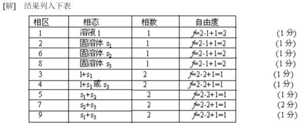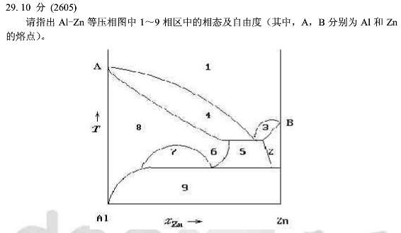 答案中所有的固相都以固溶体形式存在,没有Al和Zn自成一相的的情况,原因是什么呢… 题目中的图并没有为相区8和相区6画上边界,即使是画上一条边界,那相区8和相区6相邻、且都是两相区。但是参考书上提到的相区分布原则也指出相邻两相不可能都是两相区。这里我非常不理解。 还请大家指教 = = |
