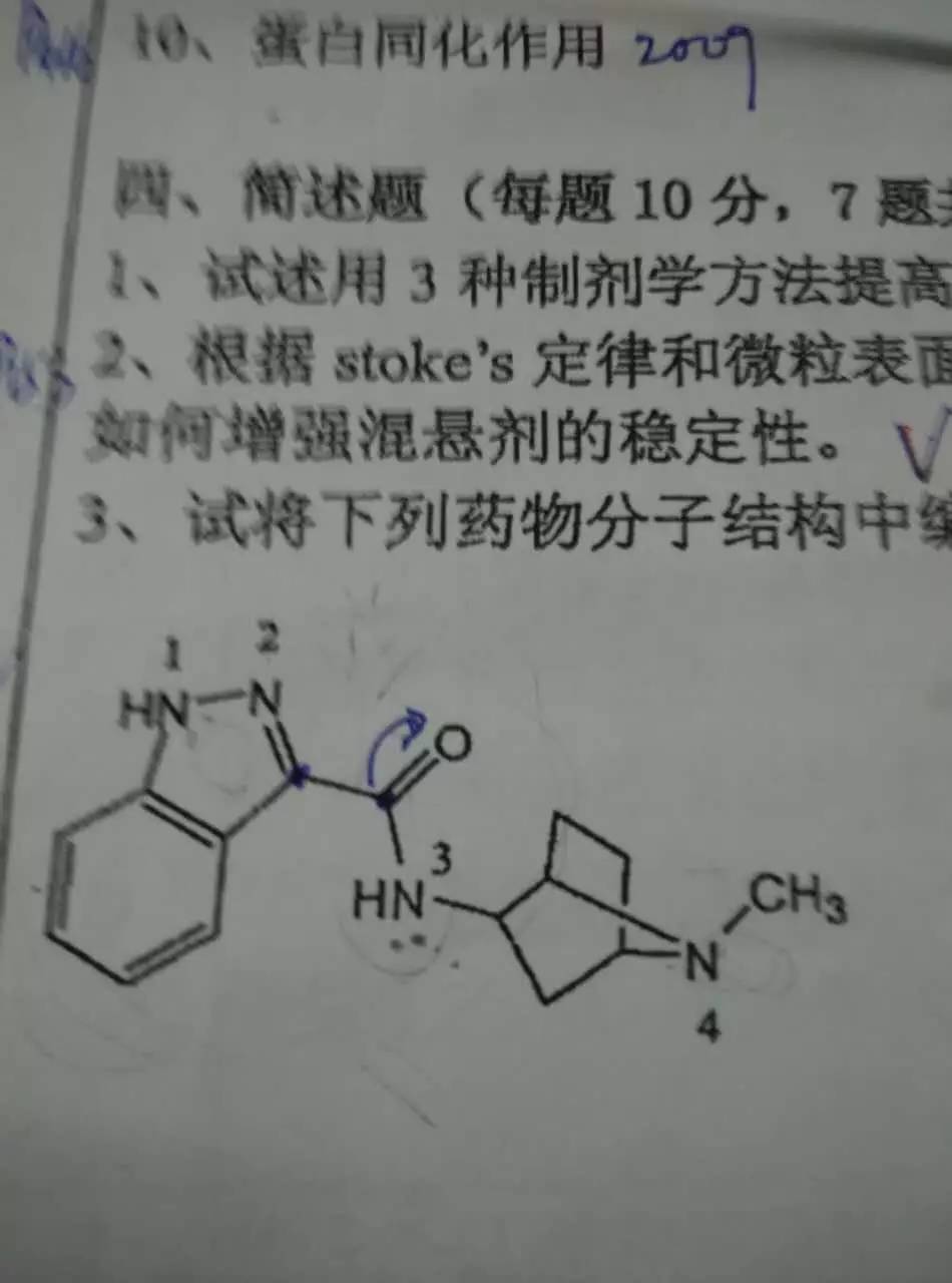 个人认为碱性从大到小依次1423,酰胺碱性最弱甚至微酸,这里没错(3是最小的),1是仲氮,而2是叔氮(仲>叔,故1>2),而2与羰基共轭,羰基是强吸电子,故4>2,故1423… 发自小木虫Android客户端 |