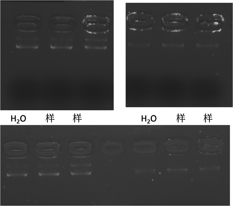 分别跑了两次,上下图对应,上网查说是蛋白残留,但是我的H2O里面没有加酶,就加了DNA作为对照,不可能有蛋白,之前没有出现过这种现象,到底是什么原因呢?