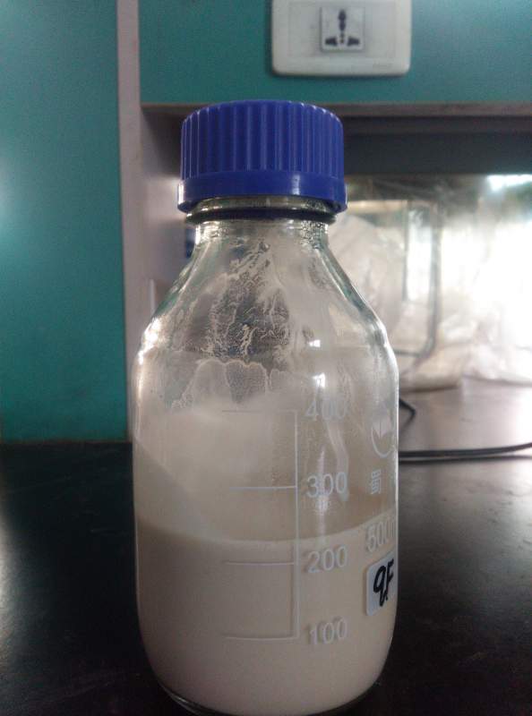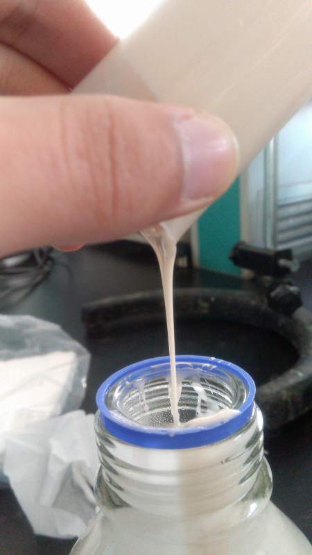 今天做的木薯淀粉胶粘剂,43wt%的淀粉水溶液加入PVA及其他助剂,粘度很大,四号转子过万,理论固含量有 35%左右,但是测得的固含量很小,只有27%,之前做得几组,淀粉水溶液质量分数都比这组低,粘度很小,但是固含都比这组高。刚开始做课题,很多都不懂,请各位大神解惑,不胜感激。图为 所做的淀粉胶,粘度很大。