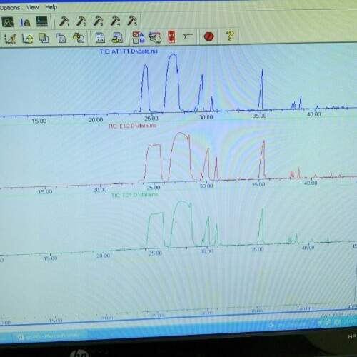 我选择了不同的样品前处理方式,出了一些数据。不知道怎么看数据选择最好的前处理方式。是把几张图重叠在一起,然后眼睛看么?安捷伦的gc-ms 连用,怎么在数据分析界面里操作呢。有的峰很宽,是不是升温程序不好。主要是我还不熟仪器怎么用。 发自小木虫Android客户端 |