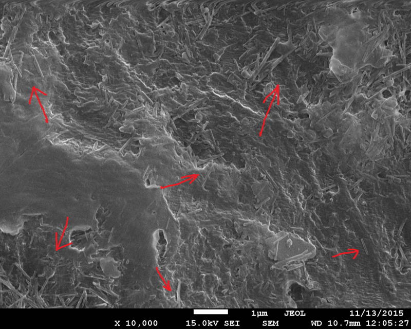 我在高分子物质中载入1%含量的ALN,在成型后的扫描电镜中发现大量长1微米,宽100纳米左右的棒状物质,感觉与高分子材料不符,初步怀疑是ALN?所以来此求证一下。