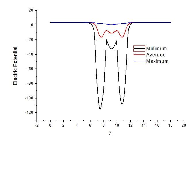 计算了二维材料,在Z轴方向加了15埃米的真空层,计算得到LOCPOT文件,导出Z轴方向的静电势,如下图所示。图中最上面的线是静电势的最大值,中间的红线是平均值,下面的线代表最小值。 请教怎么可以从静电势图中知道真空能级为多少? 具体的方法是? potential.jpg |