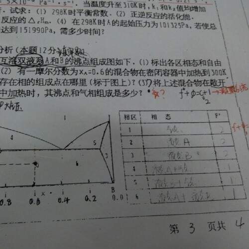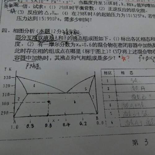 老师相图的第(3)问答案是310K YA=0.4 吗