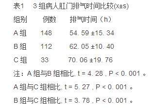 您這個分析,看似要做三組病人之平均排氣時間的比較。基本上,三組資料的平均數比較要用 One-Way ANOVA。然後在MINITAB的設定中,有一個附指令是做Comparison (就是做兩兩比較)。
