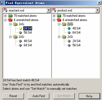 用DMol3搜索过渡态时发现,反应物中的Si原子和生成物中的另一个Si原子是配对的,如图中24号原子应该是和24号原子匹配的,可是却和48号原子匹配,最后出来的图是特别的乱的,所以问问有没有大神知道是怎么回事?